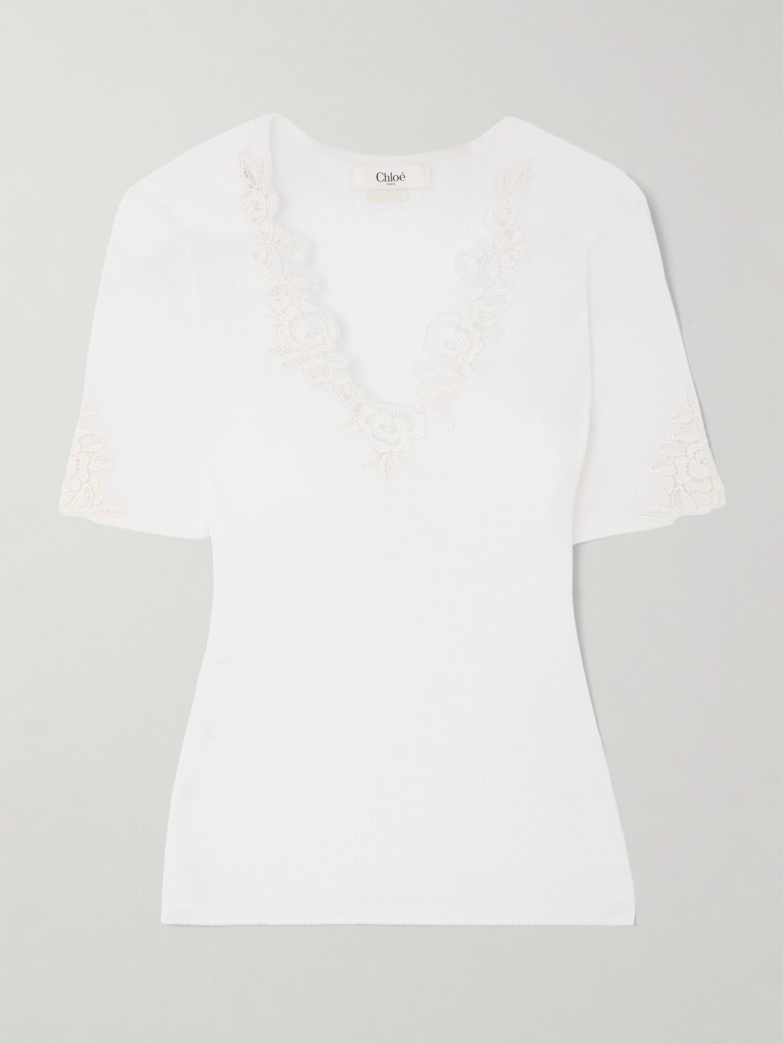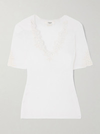 Chloe’s top evokes the bohemian spirit that made the brand so popular. It’s designed for a close fit from ribbed wool and defined by a deep V-neckline. If you’re layering up, consider jackets that keep the pretty floral lace in focus. Details & Care - White wool and lace - Slips on - 100% wool