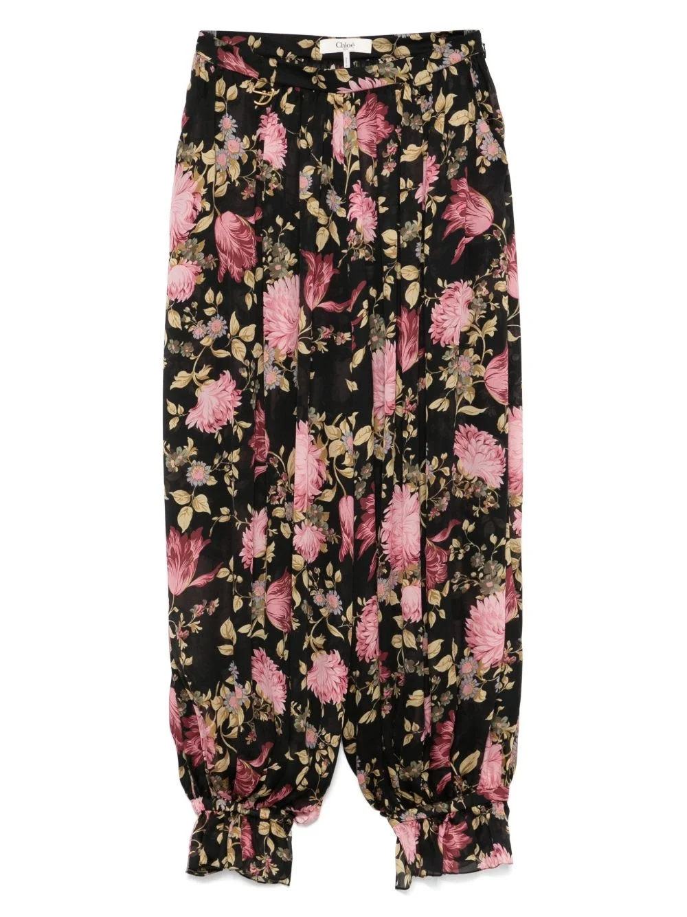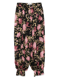 floral trousers Highlights - Black - Concealed rear zip fastening - Belt loops - Two side slash pockets - Elasticated ankles Imported Composition Silk 99% SIZE & FIT Model measurements Height 5 ft 11 in(1.8 m) Bust/Chest 31.49 in(80 cm) Hips 35.82 in(91 cm) Waist 24.8 in(63 cm) FittingInformation Designed with a wide-leg cut, these trousers allow for a close fit at the waist and offer a loose and roomy fit over the leg The elasticated hem at the ankle allows for movement and a comfortable fit Made from a lightweight non-stretch fabric