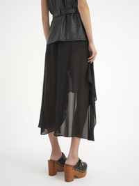 Fluid volant shorts in semi-sheer silk georgette with slits. PRODUCT DETAILS Fluid volant shorts outer shell: 100% Silk Lining: 100% Silk Care: dry cleaning only Fit: relaxed - The model is 5'10" (178 cm) and wears a prototype in size 36 with lining in size 34 - Black silk shorts - Elastic waistband - Separate shorts lining This product was made in collaboration with Akanjo, a certified WFTO supplier. Akanjo is a social enterprise located in Madagascar that places equal pay and employees' health & wellbeing at the core of their priorities. A long-standing partner of Chloé for 15 years, Akanjo is also committed to training and promoting craftsmanship. Color: Black Item code: CH24ASH11002001