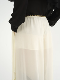 Fluid volant shorts in semi-sheer silk georgette with slits. PRODUCT DETAILS Fluid volant shorts outer shell: 100% Silk Lining: 100% Silk Care: dry cleaning only Fit: relaxed - The model is 5'10" (178 cm) and wears a prototype in size 36 with lining in size 34 - Black silk shorts - Elastic waistband - Separate shorts lining This product was made in collaboration with Akanjo, a certified WFTO supplier. Akanjo is a social enterprise located in Madagascar that places equal pay and employees' health & wellbeing at the core of their priorities. A long-standing partner of Chloé for 15 years, Akanjo is also committed to training and promoting craftsmanship. Color: Pristine White Item code: CH24ASH11002114