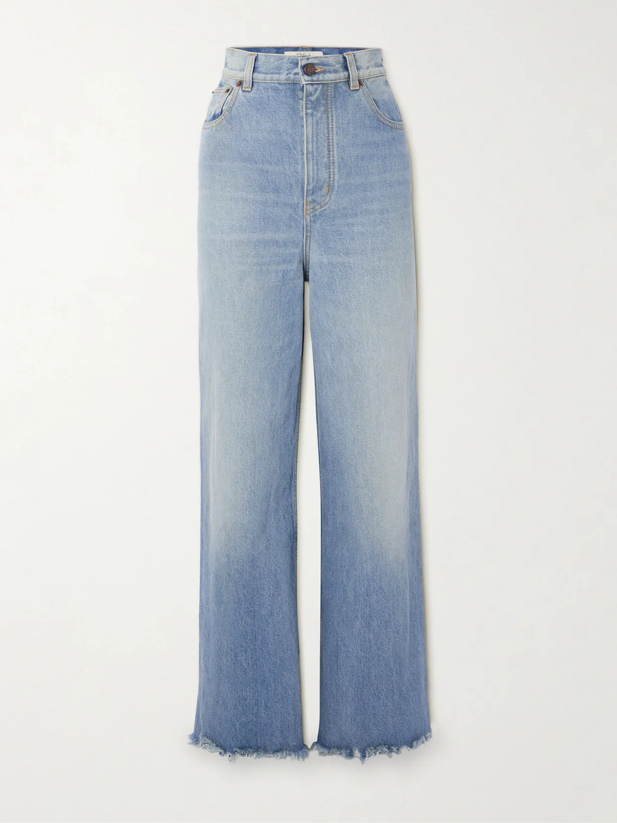 The frayed cuffs on Chloe's jeans echo the Maison's care-free, bohemian spirit. Made from denim that's faded and whiskered, they have a classic five-pocket construction and wide legs. Balance the high rise with a cropped sweater.