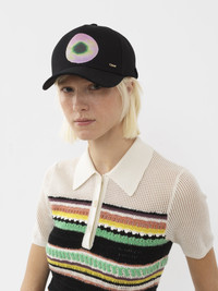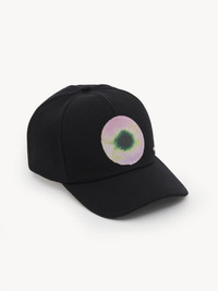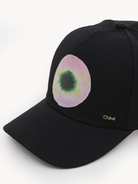 Made from recycled cotton canvas, this cap features a close-up atom print on the front, echoing the Spring-Summer '23 collection's fusion energy theme. An adjustable strap at the back ensures the perfect fit. A subtle gold brass Chloé logo lends a signature touch. Mix and match this cap with other Fusion-printed pieces in the Maison's collection. PRODUCT DETAILS Cap in recycled canvas with Fusion print - One size only - Adjustable strap Recycled cotton keeps its natural softness and inherent quality, with a reduced environmental impact. Using recycled cotton enables us to extend the lifespan of a fiber that has already been produced. Color: Black Item code: CHC23UD048CVF001