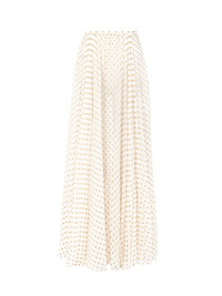 Gathered maxi skirt in light silk with an all-over lurex dots jacquard and silk-mix lining. PRODUCT DETAILS Gathered maxi skirt outer shell: 56% Silk, 44% Metallized polyester Lining: 68% Acetate fiber, 32% Silk Fit: fluid, maxi length - The model is 5'10" (178 cm) and wears a prototype in size 34 - Long printed silk skirt - Hook & zipper fastening Care: dry cleaning only This product was made in collaboration with Akanjo, a certified WFTO supplier. Akanjo is a social enterprise located in Madagascar that places equal pay and employees' health & wellbeing at the core of their priorities. A long-standing partner of Chloe for 15 years, Akanjo is also committed to training and promoting craftsmanship. Color: Snow White Item code: CH25SJU52414104