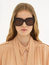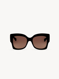 DESCRIPTION Gayia thick butterfly sunglasses made of lower-impact pre-consumer recycled acetate and bio-based nylon. Featuring a bold temple shape, the shiny frame is paired with solid brown lenses. A gold-toned Chloe logo signs the left temple. An engraved text on the inside of the right temple indicates the style's unique composition. PRODUCT DETAILS Butterfly sunglasses in recycled acetate & bio-based nylon - 100% UVA and UVB protection - Not prescription friendly - Filter category: 2 - Chloe logo engraved on the temples These sunglasses come with a case and lens cloth - Lens: 2.2" (55 mm) - Bridge: 0.7" (19 mm) - Temple: 5.7" (145 mm) - Dark Havana frame - Brown lenses Item code: CHC24WEK0252215 CARE INSTRUCTIONS These sunglasses/eyeglasses are made with carefully selected materials. Please handle with care for a longer product life.- Store in the case provided.- Clean with a soft, dry cloth.- If necessary, use a damp cloth and mild detergent. Do not use solvents or aggressive detergents which may alter the features of the sunglasses/eyewear