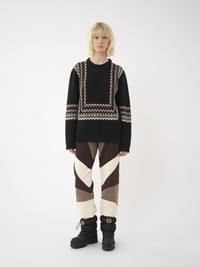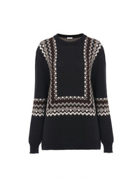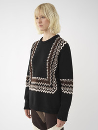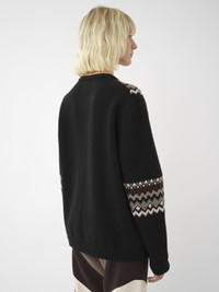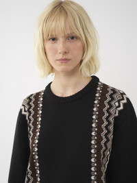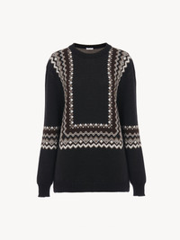 Made from a lower-impact wool and cashmere knit, this generous crew-neck sweater is a part of the Chloé Mountain capsule. A Fair Isle jacquard pattern inspired by traditional ski sweaters enhances the outdoor mood. An après-ski essential, the cozy sweater has gathered sleeves and ribbed trims for an enveloping silhouette. PRODUCT DETAILS Generous crew-neck sweater main material: 86% Wool, 8% Cashmere, 5% Polyamide, 1% Elastane Care: dry cleaning only Fit: generous - The model is 5'10" (178 cm) and wears a prototype in size S - Ski sweater - Slips on The wool used in this product comes from a farm that respects animal welfare, maintains soil health, protects biodiversity and promotes native species. Color: Brown Multicolor Item code: CHC24SMP868202ZA