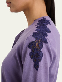 Guipure Lace-Trim Crewneck Knit Cardigan
