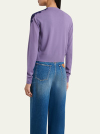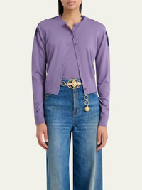 Chloe lower impact wool knit cardigan featuring guipure lace shoulder insets Crew neckline; button front Long sleeves Slim fit Ribbed cuffs and hem Wool Dry clean Imported