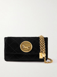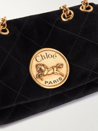 Chloe's bag is decorated with a gold-tone logo embellishment featuring a galloping horse - a nod to the label's long-storied equestrian heritage. It's made from tactile quilted velvet and has a chain strap that can be adjusted for cross-body wear. Slip your phone, cards and lipstick inside for nights out. Details & Care - Black velvet - Adjustable chain shoulder strap - Internal slip pocket - Leather lining (Lamb) - Tab-fastening front flap