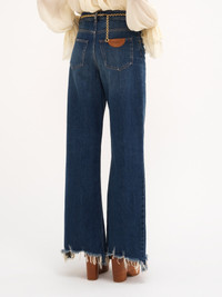Cropped wide-leg jeans in waterless organic cotton indigo denim with a hand-made raw hem. PRODUCT DETAILS Wide-leg jeans outer shell: 100% Cotton Patch: 100% Calfskin Pocket lining: 65% Polyester, 35% Cotton Fit: cropped, wide-leg - The model is 5’10” (178 cm) and wears a prototype in size 25 - Cropped jeans - Front zipper & Chloe-engraved button fastening - Classic 5-pocket design - Belt loops - Chloe half-moon tab at back Care: gentle wash 85°F (30°C) An organic cotton farming system sustains the health of soils, ecosystems and people by eliminating the use of toxic and persistent organic pollutants and increasing water conservation. This product was made with a waterless process, using up to 30% less water than standard manufacturing processes. Color: Night Blue Item code: CH24WDP22150402