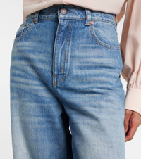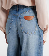 Renowned for its free-spirited aesthetic, Chloe's designs are characterized by romance with a Parisian flair. These jeans are made to a flared high-rise silhouette. Product Details - Material: 100% cotton - Care instructions: machine wash at 30 degrees - Made in Italy - Color: blue - Designer color name: Dream Blue - Item color: blue - Details: 100% calf leather - Contains non-textile parts of animal origin - Belt loops - Pockets: five pockets - Closure: zipper fly, button fastening - Item number: P01130764 Size & Fit - Fits large to size - we recommend trying one size smaller - Sizing adapted to taller women - Non-stretchy fabric - Wide-leg - High-rise - The model seen in the picture is 178cm-5'10" and wearing a size 27