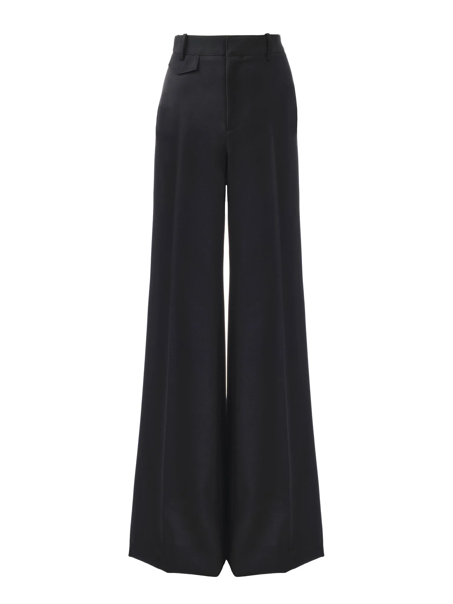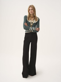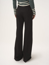 High-rise flared pants in lower-impact wool grain de poudre, detailed with a mini flap pocket at the hip. PRODUCT DETAILS High-rise flared pants outer shell: 100% Wool Lining: 100% Silk Buttons: 100% Water buffalo horn Fit: flared - The model is 5'10" (178 cm) and wears a prototype in size 36 - High-waisted pants - Engraved horn button - Front zipper - Mini flap pocket at right hip - Piped back pockets - Belt loops The wool used in this product comes from a farm that respects animal welfare, maintains soil health, protects biodiversity and promotes native species. This piece was created in collaboration with Chize Confection. A long-standing partner of Chloe, Chize Confection is a Societe Cooperative de Production (SCOP). This cooperative model is distinguished by its democratic governance, fostering a collaborative and democratic working environment. Chloe has signed a contract to financially support Chize Confection with projects that will benefit its employees. Color: Black Item code: CH25APA06067001