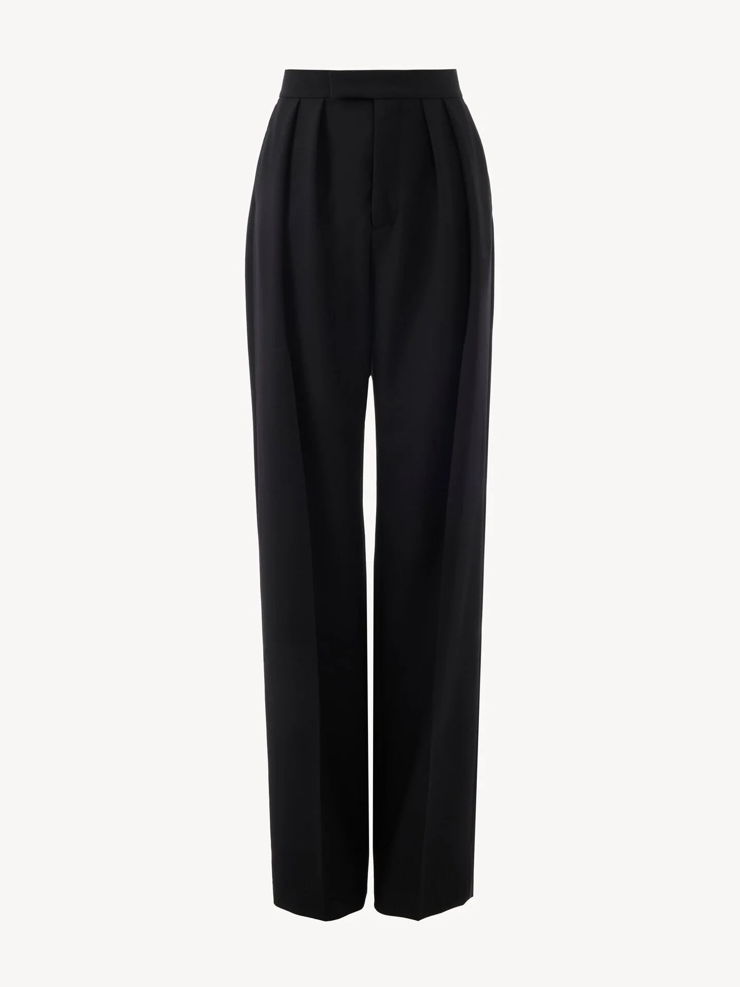 DESCRIPTION High-rise tailored pants in wool gabardine, gathered at the waist. PRODUCT DETAILS Tailored pants outer shell: 100% Wool Pocket lining: 100% Cotton Inside button: 100% Water buffalo horn Fit: tailored - The model is 5'10" (178 cm) and wears a prototype in size 36 - High-waisted pants - Front hook & zipper fastening - Engraved horn internal button - Side pockets - Piped back pockets Color: Black Item code: CH26SPA12164001 CARE INSTRUCTIONS To preserve the integrity of your garment, please refrain from washing, entrusting its care to professional cleaning services for optimal maintenance. This garment cannot withstand any bleaching agent. To maintain its shape, gently iron this garment at a maximum sole plate temperature of 110°C, taking care to avoid any harsh pressure while ironing. Entrust this garment to a specialist for mild cleaning with tetrachloroethylene and solvent F, ensuring its delicate nature is maintained with the most care. To best preserve its form and texture, please do not tumble dry this garment. To maintain its delicate nature, do not wet clean this garment. TRACEABILITY Better traceability is central to improving our materials as well as social and environmental practices. Dyeing: Italy Finishing: Italy Weaving: Italy