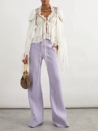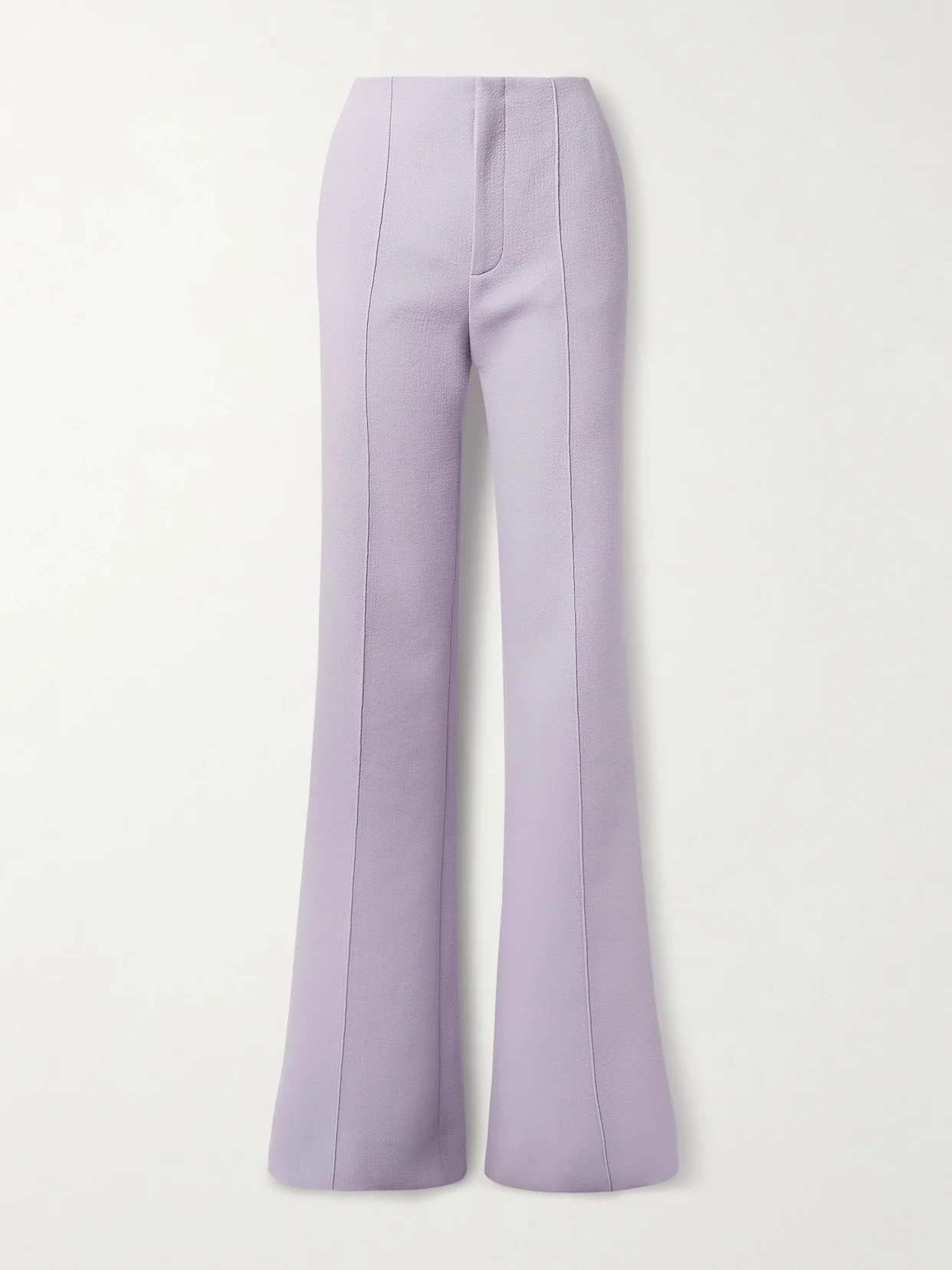 Chloe's pants highlight the brand's keen eye for precise tailoring, even within an ethereal collection. They're made from wool-crepe in a pretty lilac shade and have elongating raised seams that trace from the waist through the flared hems. Lower-Impact Materials. This product is made using at least 50% lower-impact materials or ingredients. Find out more about our NET SUSTAIN criteria here.