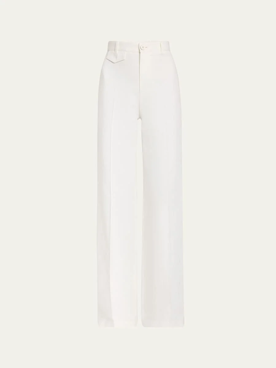 Chloe pants in cotton with leg-lengthening pressed pleats High-rise sits high on the hips Flat front Faux flap pocket Back welt pockets Full length Wide legs Button/zip fly; belt loops Cotton Dry clean Made in Italy Online Inquiries: BGS21_BA6YQ| Store Inquiries: #5043261