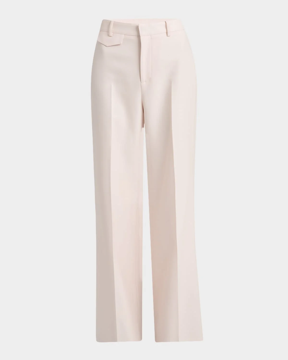 - Chloe suiting trousers featuring a hip flap pocket and pressed creases - High rise - Flat front - Back welt pockets - Wide legs - Full length - Hook/zip lfy; belt loops - Wool - Lining: Silk - Dry clean - Made in France