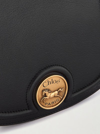 The gold-tone 'Horse Medal' hardware on Chloe's bag pays homage to the Maison's equestrian heritage. Crafted in Italy from textured-leather, it has a saddle-inspired shape and enough space inside for your phone, keys and lipstick. Adjust the shoulder strap to your preferred drop. Lower-Impact Materials. This product is made using at least 50% lower-impact materials or ingredients. Find out more about our NET SUSTAIN criteria here. Details & Care - Black textured-leather (Buffalo) - Shoulder strap - Internal slip pocket, front sleeve - Canvas lining - Magnetic-fastening front flap