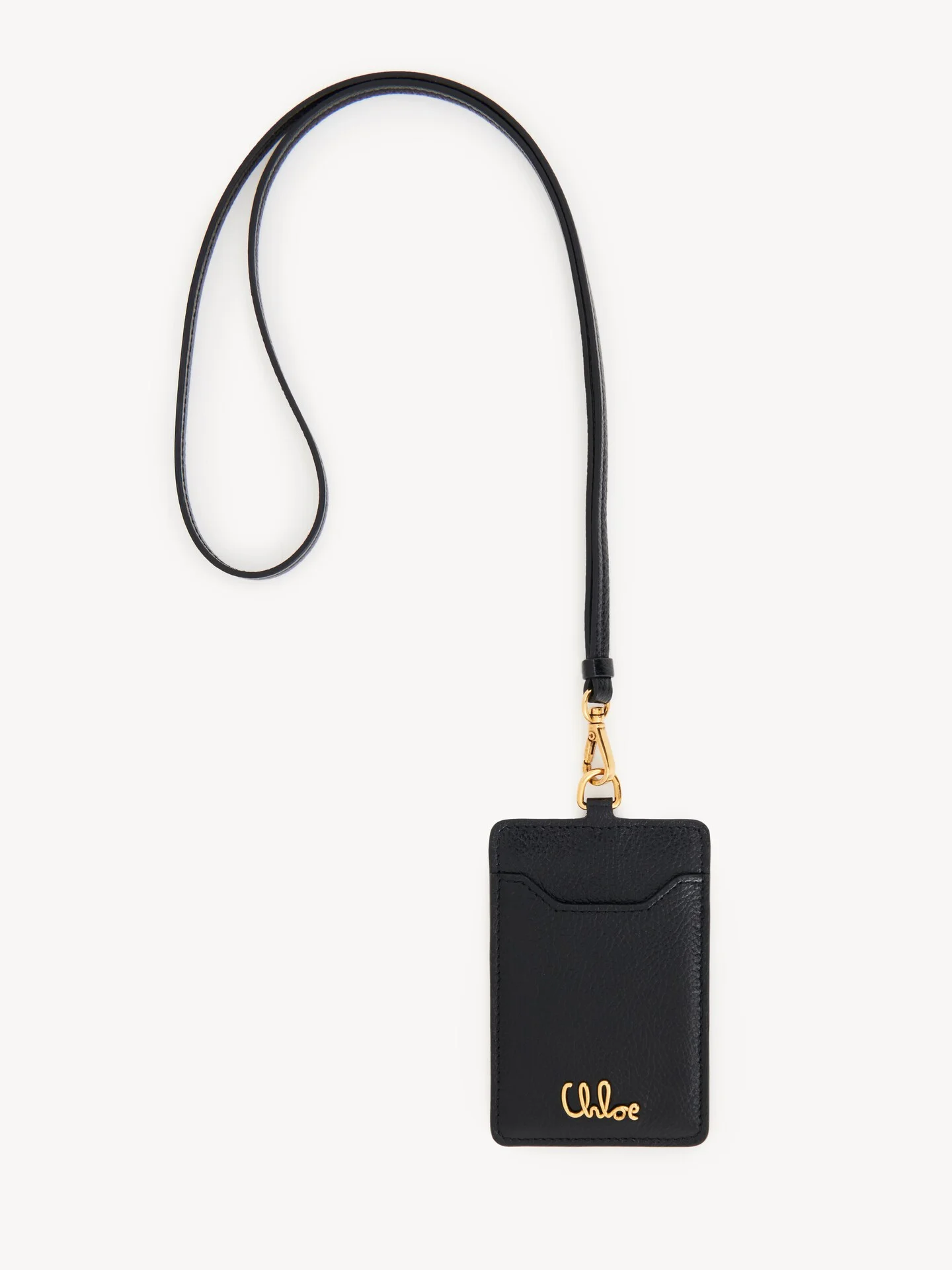 DESCRIPTION Crafted from grained buffalo leather, the Chloe Iconic pass holder combines a minimalist design with a metallic signature from the Maison's Archives. This card holder features one slot, a brass clasp and a long strap to keep your pass secure. PRODUCT DETAILS Pass card holder in grained buffalo leather Secondary material: Thermoplastic polyurethane Main lining: Buffalo leather - 1 main compartment - 1 card slot Comes with a dust bag - Width: 2.8" (7 cm) - Height: 4.1" (10.5 cm) - Depth: 0.08" (0.2 cm) To make this product, Chloe worked with Leather Working Group (LWG) certified leather manufacturers. LWG certifies tanneries based on their water and energy usage, management of chemicals, solid waste, and wastewater. Color: Black Item code: CH25AP558O37001 CARE INSTRUCTIONS In order to protect this article, we recommend that you: avoid rubbing against abrasive materials shield it from humidity, light and heat avoid contact with liquids and greasy substances (makeup, cream) store your product carefully in its dustcover when not in use avoid rubbing against color-contrasting clothes or materials. To remove a water stain, gently soak up liquid by dabbing it with a white cloth should a scratch occur on the leather, you can gently massage it with the same type of cloth for all other issues, please contact the Chloe after-sales service or a specialist. TRACEABILITY Better traceability is central to improving our materials as well as social and environmental practices. Dyeing: Italy Finishing: Italy Tanning: Italy