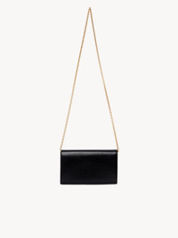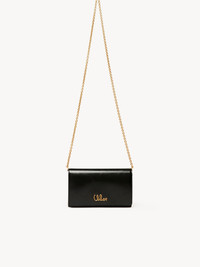 DESCRIPTION Crafted from shiny calfskin, the Chloe Iconic flap wallet on chain combines a minimalist silhouette with a metallic signature from the Maison's archives. Sized to fit your phone, this practical accessory features two compartments, a zipped pocket and multiple card slots. Carry on the shoulder or crossbody. PRODUCT DETAILS Flap wallet on chain in shiny calfskin Main lining: Calfskin Inner lining: 65% Polyester, 35% Cotton Carry: Shoulder & crossbody - 1 chain strap - 1 flap with magnetic closure - 2 main compartments - 1 zipped compartment - 8 card slots - 1 inside flat pocket Comes with a dust bag - Width: 7.5" (19 cm) - Height: 4.7" (12 cm) - Depth: 2" (5 cm) To make this product, Chloe worked with Leather Working Group (LWG) certified leather manufacturers. LWG certifies tanneries based on their water and energy usage, management of chemicals, solid waste, and wastewater. Color: Black Item code: CH25SP485O16001 CARE INSTRUCTIONS In order to protect this article, we recommend that you: avoid rubbing against abrasive materials shield it from humidity, light and heat avoid contact with liquids and greasy substances (makeup, cream) store your product carefully in its dustcover when not in use avoid rubbing against color-contrasting clothes or materials. To remove a water stain, gently soak up liquid by dabbing it with a white cloth should a scratch occur on the leather, you can gently massage it with the same type of cloth for all other issues, please contact the Chloe after-sales service or a specialist. TRACEABILITY Better traceability is central to improving our materials as well as social and environmental practices. Dyeing: Italy Finishing: Italy Tanning: Italy
