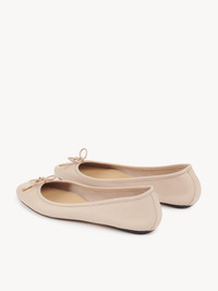 Crafted from glossy sheepskin, the Iris ballerinas showcase a classic ballet silhouette with an almond toe embellished with a tonal bow and the Maison's playful banana charm. PRODUCT DETAILS Flat ballerina Upper: sheepskin Inner sole: sheepskin Sole: cowhide Heel: thermoplastic polyurethane Fit true to size, European sizing - Slip-on To make this product, Chloe worked with Leather Working Group (LWG) certified leather manufacturers. LWG certifies tanneries based on their water and energy usage, management of chemicals, solid waste, and wastewater. Color: Blushy Beige Item code: CHC25S08HQN26Y