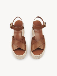 Set on a braided cord sole, these Isla wedge espadrilles feature a criss-cross upper in vegetable-tanned calfskin signed with a debossed Chloe logo. An adjustable buckled ankle strap ensures a comfortable fit. The cord wedge is finished with Chloe Iconic embroidery at the back. PRODUCT DETAILS Wedge espadrille heel height: 4.1" (10.5 cm) Heel-to-toe drop: 2" (5 cm) Upper: calfskin Inner sole: cowhide Main lining: calfskin Sole: TPU Heel: 70% cotton, 30% polyester Fit true to size, European sizing - Buckle fastening To make this product, Chloe worked with Leather Working Group (LWG) certified leather manufacturers. LWG certifies tanneries based on their water and energy usage, management of chemicals, solid waste, and wastewater. Color: Ginger Brown Item code: CH25A10OLU27T
