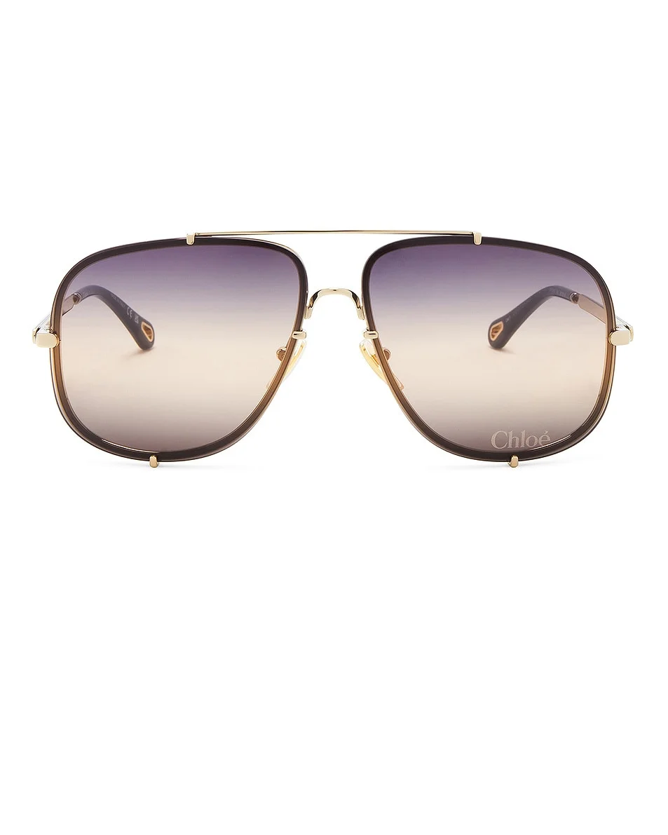 Details - Delicate metal frame with scalloped rim detailing - Gradient blue lenses in a rounded butterfly shape - Adjustable nose pads for personalized comfort - Gold-tone finish with Chlo logo engraved at temples - 100% UV protection on lenses - Includes branded hard case and cleaning cloth - Lens measures approx 62mm - Bridge measures approx 16mm - Made in Italy - Our Style No. CLOE-WG53 - Manufacturer Style No. CH0348S-005