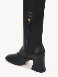 These Janis heeled boots are crafted from soft leather-effect stretch textile for a second-skin fit. Set on a stacked, flared heel, they pair a high tube leg with a subtle square-toe shape. PRODUCT DETAILS Heeled boot heel height: 3.1" (8 cm) Heel-to-toe drop: 3.1" (8 cm) Upper: 45% polyester, 55% polyurethane Inner sole: lambskin Main lining: lambskin Sole: cowhide Heel: 45% polyester, 55% polyurethane Fit true to size, European sizing - Zip fastening Color: Black Item code: CH25W13HUH001