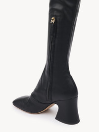 These Janis over-the-knee boots are crafted from soft leather-effect stretch textile with patent leather detail on the toes. Set on a flared block heel, they pair a high tube leg with a subtle square toe shape. PRODUCT DETAILS Over-the-knee boot heel height: 3.1" (8 cm) Heel-to-toe drop: 3.1" (8 cm) Upper 1: 60% polyurethane, 40% polyester Upper 2: patent leather Inner sole: lambskin Main lining: lambskin Sole: cowhide Heel: 60% PU, 40% PL Fit true to size, European sizing - Zip fastening Color: Black Item code: CHC25A11HSV001