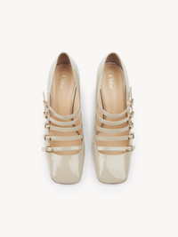 Crafted from patent calfskin, these Janis pumps are set on a flared block heel. A subtle square toe shape combines with multiple adjustable straps signed by gold-tone buckles engraved with the Chloe logo. PRODUCT DETAILS Pump heel height: 3.1" (8 cm) Heel-to-toe drop: 3.1" (8 cm) Upper: calfskin Inner sole: lambskin Main lining: lambskin Sole: cowhide Heel: calfskin Fit true to size, European sizing - Buckle fastening To make this product, Chloe worked with Leather Working Group (LWG) certified leather manufacturers. LWG certifies tanneries based on their water and energy usage, management of chemicals, solid waste, and wastewater. Color: City Grey Item code: CHC25A11CSG034