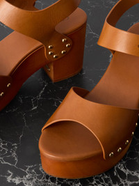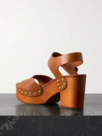 Chloe's sandals belong to the 'Jeannette' line which is defined by distinct wooden platform soles and striking gold-tone studs. They've been made in Italy from leather and have wide curved straps. The block heel discreetly features the logo plaque. Small to size. See Size & Fit notes. Size & Fit - Fits small to size, take a full size larger than normal - Only available in full sizes, go down to the nearest whole size if you take a half size - Italian sizing Details & Care - Heel measures approximately 110mm/ 4.5 inches - Brown leather (Calf) - Buckle-fastening ankle strap