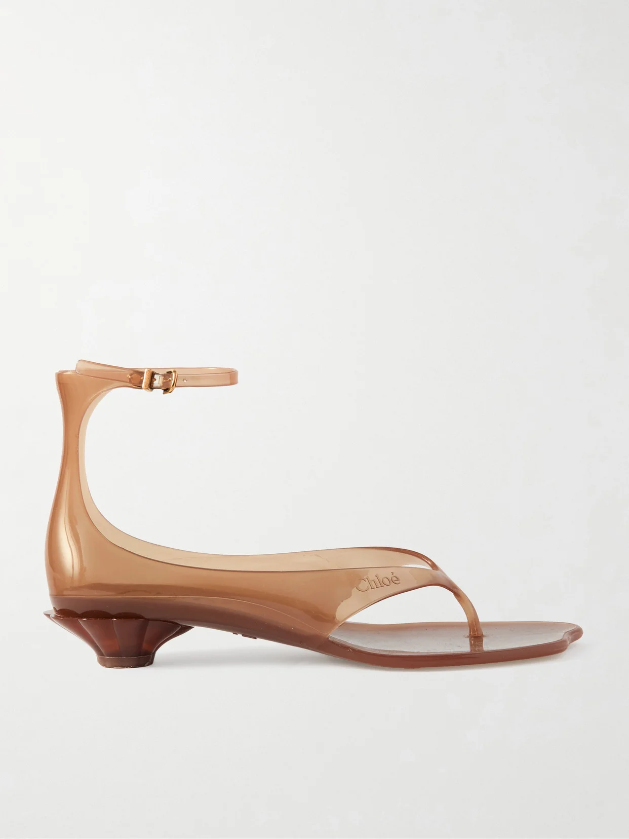 Chloe's sandals grounded an array of looks on the label's Spring '25 runway, proving just how versatile they are. Inspired by retro 'Jelly' styles, they're made from see-through TPU in a light-brown shade and have a thong silhouette and petal-shaped heel.