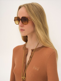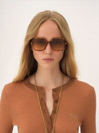 DESCRIPTION These Judy square sunglasses pair a thin, lightweight Havana Honey frame in lower-impact acetate with gradient brown to mustard lenses. A Chloe-engraved gold metal piece elevates these sunglasses at the temples. PRODUCT DETAILS Square sunglasses in lower-impact acetate & bio-based nylon - 100% UVA and UVB protection - Prescription friendly - Chloe-engraved metal piece on the temples - Filter category: 2 These sunglasses come with a case and lens cloth - Lens: 2.2" (55 mm) - Bridge: 0.6" (16 mm) - Temple: 5.5" (140 mm) - Havana Honey lower-impact acetate frame - Gradient brown to mustard lenses Item code: CH26SEK0362846 CARE INSTRUCTIONS These sunglasses/eyeglasses are made with carefully selected materials. Please handle with care for a longer product life.- Store in the case provided.- Clean with a soft, dry cloth.- If necessary, use a damp cloth and mild detergent. Do not use solvents or aggressive detergents which may alter the features of the sunglasses/eyewear