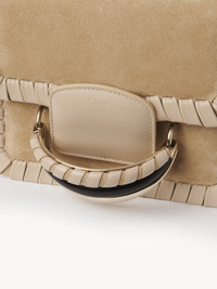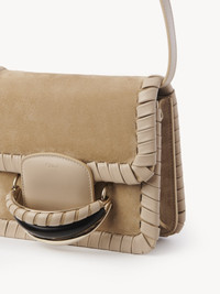 Crafted from a decorative, textural combination of whip-stitched shiny calfskin and suede calfskin, this Kattie cross-body bag combines a sleek, masculine silhouette with a bold jewelry signature. The timeless flap design is highlighted by the articulated bracelet in three iconic Chloé materials for rich texture: brass, wood, and leather. The elegant gusset construction ensures a roomy main compartment, while the concealed magnet closure enhances the clean lines. Carry this day-to-evening bag by hand with the bracelet handle, or on the shoulder or cross-body with the adjustable and removable strap. All about Kattie... The Kattie line pays tribute to the essence of Chloé bags with its bold yet feminine allure heightened by the articulated jewelry signature. It echoes the Maison's characteristic play on masculine and feminine notes. PRODUCT DETAILS Cross-body bag in whip-stitched shiny calfskin on suede calfskin Carry: hand, cross-body & long shoulder - Magnet closure - 2 main compartments - 1 inner flat pocket - Adjustable & removable strap Comes with a dust bag - Width: 7.8" (19.7 cm) - Height: 5.7" (14.5 cm) - Depth: 2.8" (7 cm) - Min. strap drop: 15.7" (40 cm) - Max. strap drop: 20.9" (53 cm) This handbag is made of top-grain leather. The grain side was sanded to provide the leather with its velvet-like finish. Depending on the degree of finishing, this technique may produce a leather called nubuck or velvet leather. This material is fragile, particularly with respect to colors. Follow care instructions on the leaflet. By purchasing this product, you are supporting sustainable leather manufacturing through the Leather Working Group. Color: Pearl Beige Item code: CHC22AS500H81278
