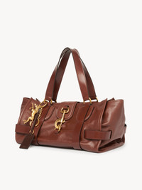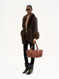 Inspired by the Maison's heritage, the Kerala 25 handbag is crafted from smooth and natural calfskin. The interplay of materials creates a unique construction embellished with leather bands and an oversized metallic hook. A leather tag and golden banana and horse charms create a signature finish. Carry this day bag in the hand or on the shoulder. PRODUCT DETAILS Kerala 25 handbag in smooth & natural calfskin Main material: Cowhide Secondary material: Calfskin Main lining: Calfskin Carry: Hand & shoulder - 1 main compartment - Inside flat pocket - Hook & zip closure Comes with a dust bag - Width: 14.6" (37 cm) - Height: 7.9" (20 cm) - Depth: 8.3" (21 cm) - Handle drop: 8.7" (22 cm) This handbag is made from natural leather with a very light and transparent finish. Grain placement over the bag has been selected randomly by designers. Keep away from water (rain). The bag may develop smooth or light halos. If the leather gets wet, dry it with a soft white cloth to absorb water. With use, the leather may become marked and shiny. For large and medium size bags, the handle will arrive inside the bag. Do not throw it away. Color: Dark Ebony Item code: CHC25SS741O4925A