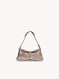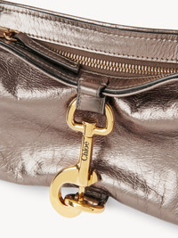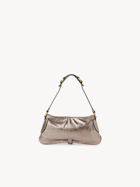Crafted from metallized calfskin, the Kerala 25 shoulder bag is inspired by the Maison's heritage. The ideal daily companion, it features a slouchy retro silhouette embellished with the line's oversized metallic hook. This day bag comes with a short strap for shoulder and hand carry. PRODUCT DETAILS Kerala 25 shoulder bag in metallized calfskin Main material: Calfskin Main lining: Calfskin Carry: Shoulder - 1 main compartment - 1 inside flat pocket - Zip closure Comes with a dust bag - Width: 11.8" (30 cm) - Height: 5.9" (15 cm) - Depth: 1.6" (4 cm) - Handle drop: 8.3" (21 cm) This shoulder bag is made from soft metallic leather which may create smooth or light halos. If the leather gets wet, dry it with a soft white cotton cloth to absorb water. With use, the leather may become marked and shiny. To make this product, Chloe worked with Leather Working Group (LWG) certified leather manufacturers. LWG certifies tanneries based on their water and energy usage, management of chemicals, solid waste, and wastewater. Color: Shiny Gray Item code: CHC25SS743O54074