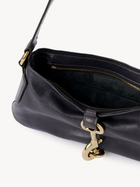 Crafted from smooth and natural calfskin, the Kerala 25 shoulder bag is inspired by the Maison's heritage. The ideal daily companion, it features a slouchy retro silhouette embellished with the line's oversized metallic hook. This day bag comes with a short strap for shoulder and hand carry. PRODUCT DETAILS Kerala 25 shoulder bag in smooth & natural calfskin Main material: Cowhide Secondary material: Calfskin Main lining: Calfskin Carry: Shoulder & hand - 1 main compartment - 1 inside flat pocket - Zip closure Comes with a dust bag - Width: 11.8" (30 cm) - Height: 5.9" (15 cm) - Depth: 1.6" (4 cm) - Handle drop: 8.3" (21 cm) This shoulder bag is made from natural leather with a very light and transparent finish. Grain placement over the bag has been selected randomly by designers. Keep away from water (rain). The bag may develop smooth or light halos. If the leather gets wet, dry it with a soft white cloth to absorb water. With use, the leather may become marked and shiny. For large and medium size bags, the handle will arrive inside the bag. Do not throw it away. Color: Black Navy Item code: CHC25SS743O4944C