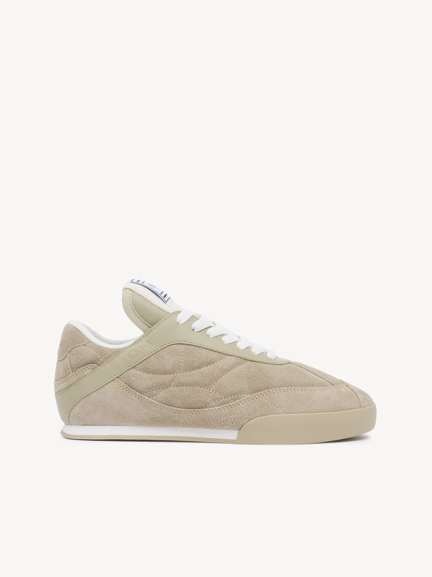 DESCRIPTION Inspired by the ballet and boxing worlds, these Chloe Kick sneakers are crafted from suede and smooth calfskin. Lightweight and comfortable, they combine a slim silhouette with a recycled sole and an inner wedge for added height and support. A boxing-style Chloe label lends a signature finish. PRODUCT DETAILS Sneaker heel height: 0.8" (2 cm) Heel-to-toe drop: 0.2" (0.5 cm) Upper 1: suede calfskin Upper 2 : calfskin Inner sole: polyester Main lining: polyester Sole: rubber Fit true to size, European sizing - Lace-up Chloe Kick sneakers come in a dedicated dustbag and box evoking the ballet and boxing worlds. To make this product, Chloe worked with Leather Working Group (LWG) certified leather manufacturers. LWG certifies tanneries based on their water and energy usage, management of chemicals, solid waste, and wastewater. Color: Pale Khaki Item code: CHC25A07IMS21M CARE INSTRUCTIONS Your Chloe sneakers have been carefully and exclusively crafted by a specialist. They combine sophisticated materials such as leather and/or suede/nubuck and/or lightweight fabrics for optimum comfort.To preserve their beauty and original appearance, we recommend that you take special care of your Chloe sneakers.Store them away from direct sunlight, heat and rain.To prevent colour migration avoid any contact with other leathers.If your sneakers get wet, remove the insole and leave to dry in a well-aired place.The smooth or grained leather parts of your sneakers can be cleaned with a dry, soft cloth.To maintain the velvety appearance of suede or nubuck leather, gently clean with a crepe brush.The fabric parts can be cleaned with a soft, slightlydamp cloth.Fill your sneakers with tissue paper to maintain the original shape, then place them in the two protective covers provided. Store them in a cool, dry, well-aired place.