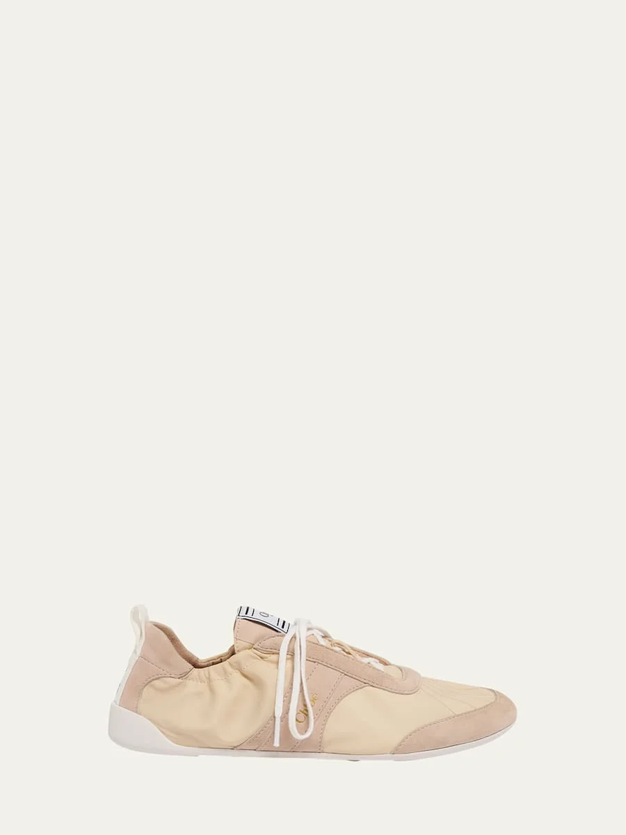 The "Kick" sneakers by Chloe are crafted from leather and suede in a lowprofile silhouette Round toe Laceup vamp Elasticated collar Pulltab at backstay Leather outsole Imported