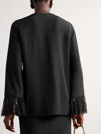 Lace-trimmed silk crepe de chine shirt