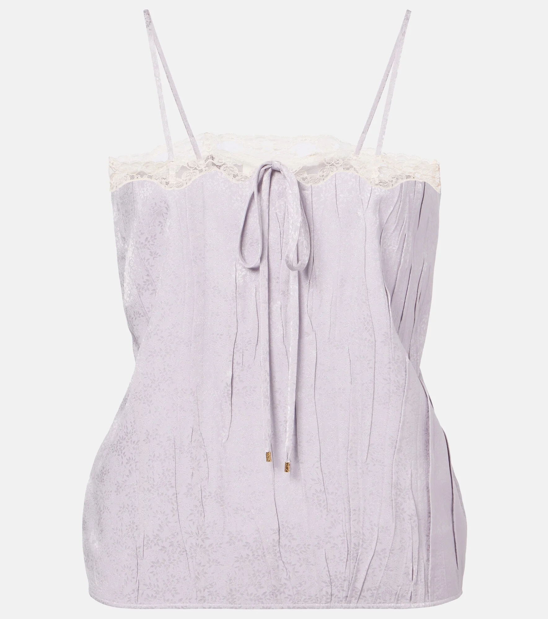 Lace-trimmed silk top