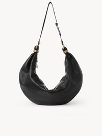 Inspired by the Maison's Archives, this oversized Bracelet Hobo bag is crafted from shiny grained calfskin. The supple, rounded shape is elevated by stacked two-toned rings at the ends. Carry the large Bracelet bag on the shoulder. PRODUCT DETAILS Large Bracelet Hobo bag in shiny grained calfskin Main material: Calfskin Main lining: Split calfskin Carry: Shoulder, cross-body - 1 main compartment - 1 inside flat pocket - Zip closure - Adjustable strap Comes with a dust bag - Width: 20.1" (51 cm) - Height: 9.4" (24 cm) - Depth: 5.9" (15 cm) - Min. strap drop: 25.6" (65 cm) - Max. strap drop: 28" (71 cm) This handbag is made from pure aniline leather. Tanning imparts a specific character to the skin, such as hues and wrinkles, combined with a light and transparent aniline finish. Respect the care instructions on the leaflet. To make this product, Chloé worked with Leather Working Group (LWG) certified leather manufacturers. LWG certifies tanneries based on their water and energy usage, management of chemicals, solid waste, and wastewater. Color: Black Item code: CHC24AS610N72001