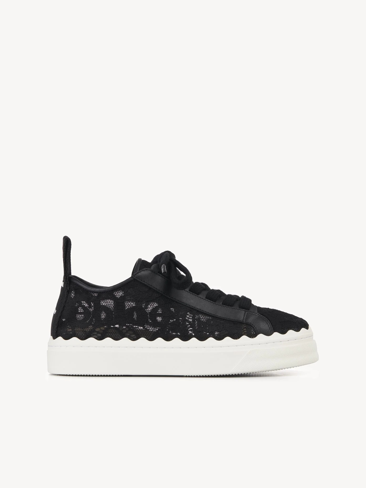 The Lauren family's active daywear option, this lace-up sneaker is cut from soft and delicate lace from the ready-to-wear collection and lined with mesh for transparency. Tonal laces, a flexible white rubber sole, and a nylon back loop revealing the Chloé logo all enhance its sporty aesthetic. The signature Lauren scallops echo the line’s romantic DNA, while the round toe shape lends a feminine finish. PRODUCT DETAILS Sneaker heel height: flat - Upper: cotton, calfskin & polyamide - Sole: rubber - Lining: polyamide Fit true to size, Italian sizing - Lace-up sneaker Care: lace is a delicate and fragile material that should be treated with special care. Keep the shoes in their dust bag when not worn. Color: black Item code: CHC19U108D2001