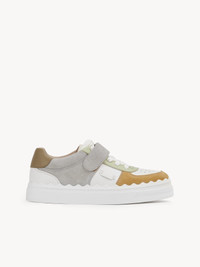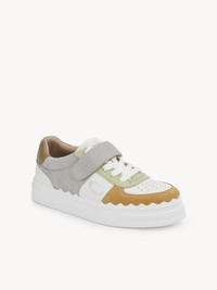 The classic Lauren sneaker is reinterpreted with a Velcro strap and modern details in this version. Made from a textural, multicolor interplay of smooth and suede calfskin, this lace-up sneaker is an active daywear option rooted in the Chloé DNA. The easy-wearing, low-top design showcases a sporty aesthetic, enhanced by the recycled rubber sole, the padded ankle and the subtle Chloé logo at the side. The signature Lauren scallops lend a romantic touch, while the round toe shape adds a feminine finish to this comfortable platform sneaker. PRODUCT DETAILS Flat sneaker platform height: 1.2" (3 cm) - Inner sole: sheepskin - Upper 1: cowhide - Upper 2: suede cowhide - Upper 3: 90% polyester, 10% nylon - Sole: 85% polyurethane, 15% thermoplastic polyurethane - Main lining: sheepskin - Secondary lining: suede sheepskin Fit true to size, European fit - Lace-up sneaker - Velcro strap By purchasing this product, you are supporting sustainable leather manufacturing through the Leather Working Group. Color: Elephant Grey Item code: CHC22W702AR066