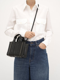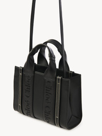 Crafted from luxurious smooth calfskin detailed with shiny calfskin strips, this mini Woody tote bag is a compact day-to-evening bag with a strong summer attitude. The main compartment fits a mobile phone. The bag's sharp, modern lines are emphasized by the vertical leather strips and the signature Chloe logo ribbon. Carry this mini bag in hand. All about Woody... The Woody line is characterized by the signature Chloe logo carried over from the Maison's iconic mules. It showcases a modern, minimalist silhouette ranging from nano to large sizes. PRODUCT DETAILS Tote bag in smooth calfskin with embroidered Chloe logo Main lining: Linen Carry: hand, long shoulder & cross-body - 1 strap & 1 top handle - 1 main compartment (fits a mobile phone) - Linen lining Comes with a dust bag - Width: 7.9" (20 cm) - Height: 5.5" (14 cm) - Depth: 1.6" (4 cm) - Handle drop: 3.1" (7.9 cm) - Strap drop: 20.5" (52 cm) This mini tote bag is made from pure aniline leather. Tanning imparts a specific character to the skin, such as hues and wrinkles, combined with a light and transparent aniline finish. Respect care instructions on the leaflet. To make this product, Chloe worked with Leather Working Group (LWG) certified leather manufacturers. LWG certifies tanneries based on their water and energy usage, management of chemicals, solid waste, and wastewater. Color: Black Item code: CHC23UP237I60001
