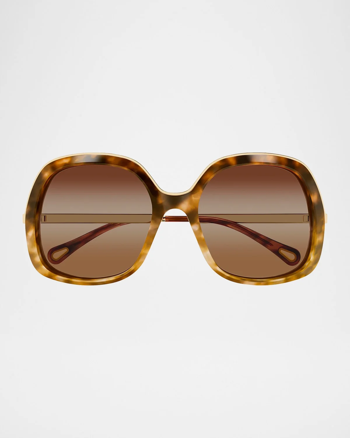 The "Leia" acetate sunglasses pair a 70sstyle frame with an ornamental goldtone metal insert that adorns the top for a touch of sleek style. Dropshaped openings at the temple tips make these sunglasses compatible with Chloe's eyewear jewelry. Lens/bridge/temple (in mm): 5619135 Oversized square frames Gradient lenses Fixed nose pads Thin, tapered metal arms with engraved logo script on temples 100% UVA/UVB protection Made in Italy
