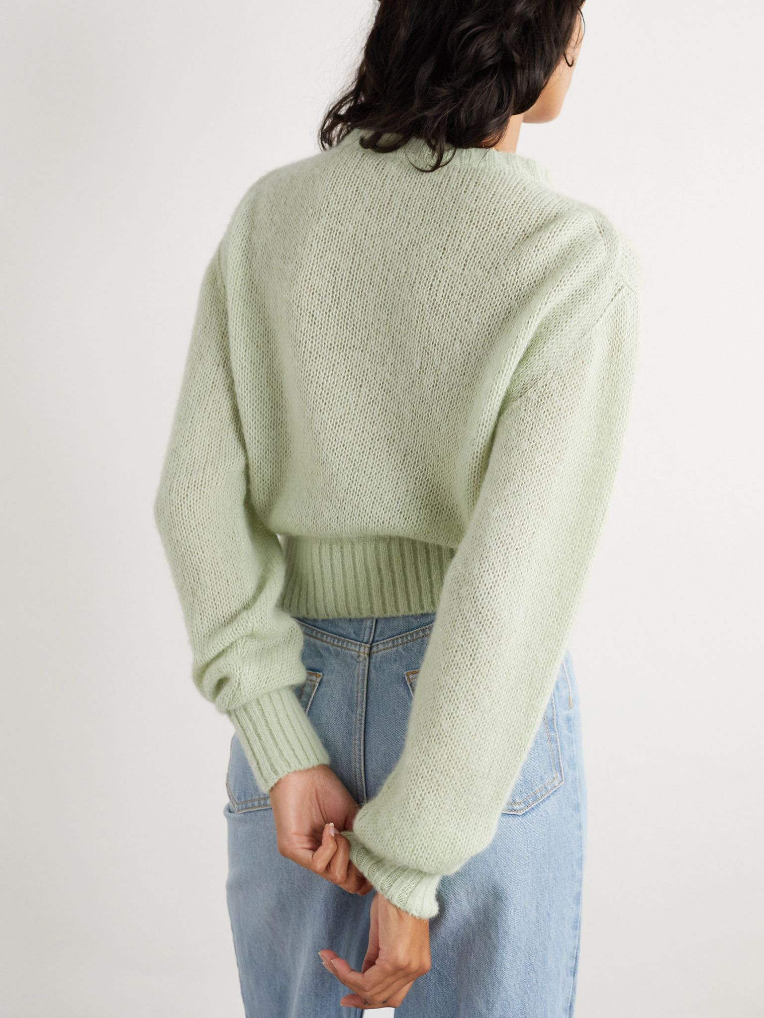 Chloe’s sweater is embroidered with a cursive version logo. It’s knitted from a lightweight blend of alpaca and silk and finished with ribbed trims. Wear yours with the label’s jeans. Details & Care - Light-green alpaca and silk-blend - Slips on - 62% alpaca, 28% silk