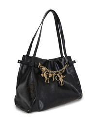 Charms embellished leather tote bag Highlights - Black - Calf leather - Gold-tone charms - Chain detail - Top handles Imported Composition Lining: Cotton 55%, Linen/Flax 45% Outer: Leather 100% SIZE & FIT Measurement DEPTH 5.9 in(15 cm) HEIGHT 9.44 in(24 cm) WIDTH 12.99 in(33 cm)