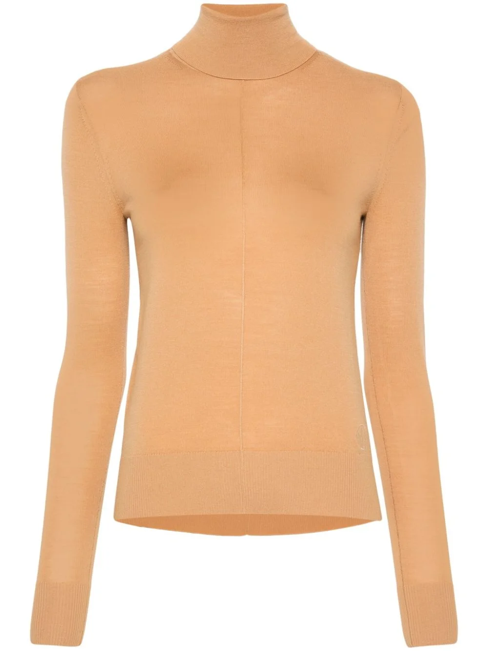 logo-embroidered wool jumper Highlights - Medium beige - Wool - Knitted construction - Fine knit - Embroidered logo to the front - Ribbed trim - Seam detailing - Roll neck - Long sleeves - Straight hem Imported Composition Polyester 100%, Wool 100% SIZE & FIT Model measurements Height 5 ft 11 in(1.8 m) Bust/Chest 32.67 in(83 cm) Hips 35.82 in(91 cm) Waist 25.98 in(66 cm) FittingInformation Designed for a slim fit that sits just away from the body offering a close yet comfortable fit The ribbed hem offers a close, comfortable fit Made with a lightweight knit, this piece offers some stretch This piece fits true to size – take your usual size Washing instructions Machine Wash