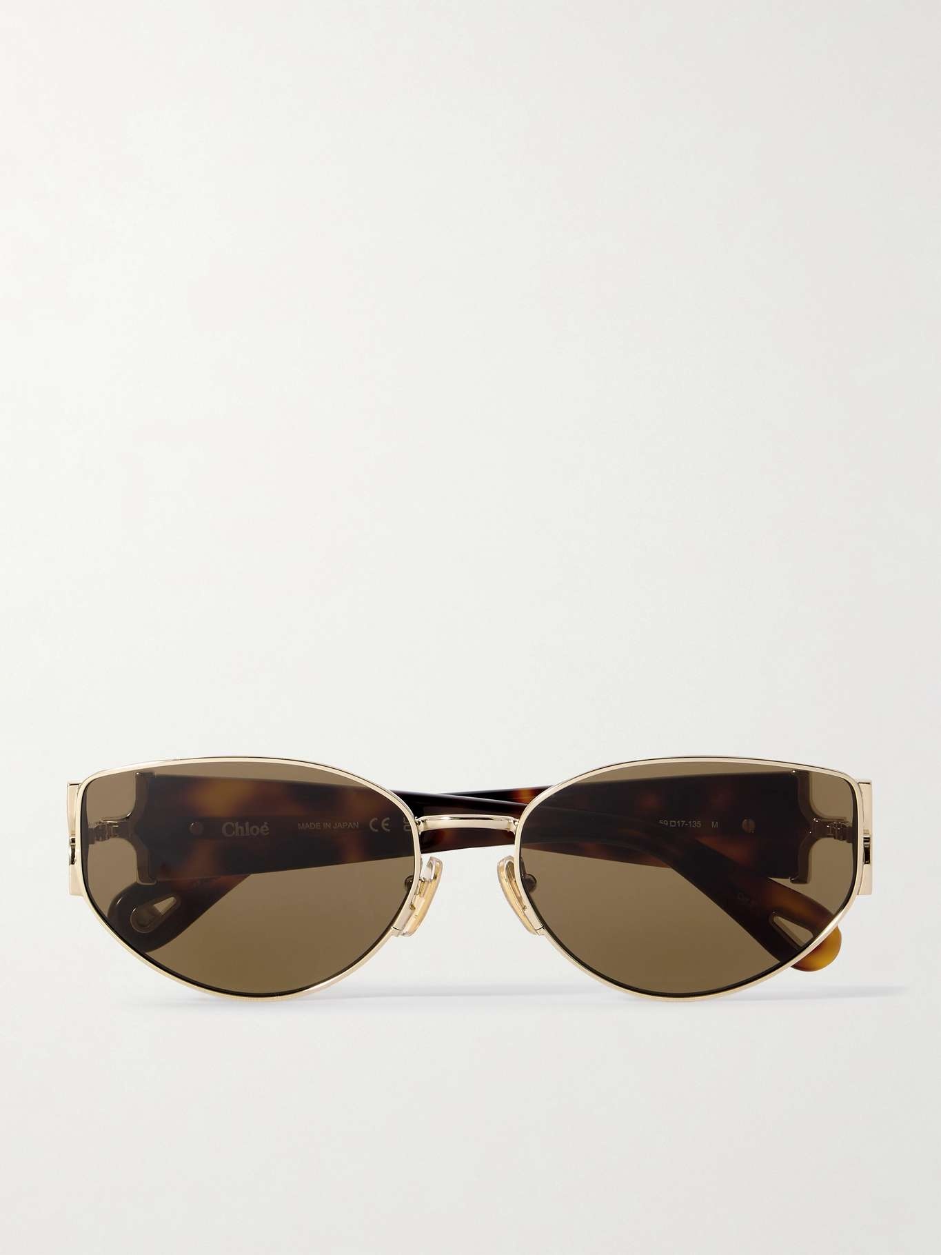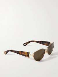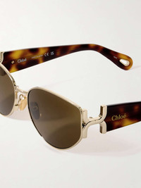 EDITORS'NOTES CHLOE Eyewear's sunglasses will beautifully complement the maison's breezy, bohemian looks. Cast from gold-tone metal, they have chic oval frames and tortoiseshell acetate arms etched with logo lettering. Store yours in the protective case between uses. SIZE & FIT This item’s measurements are: - Height: 4cm / 1.6in - Width: 13.5cm / 5.3in DETAILS & CARE - Gold-tone metal, tortoiseshell acetate - Come with a case - 100% UV protection