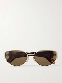 Oval-frame gold-tone and tortoiseshell acetate sunglasses