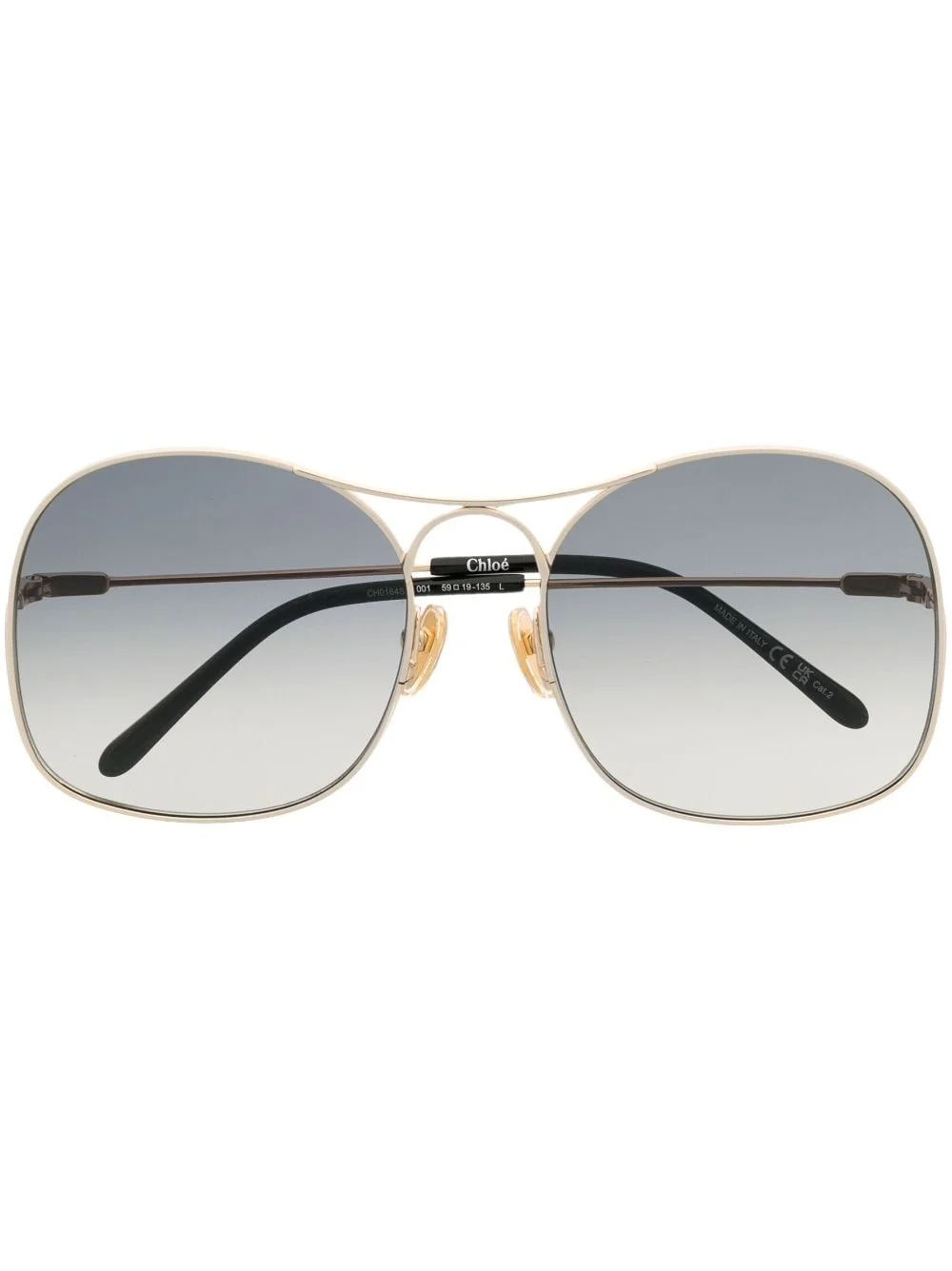 logo-engraved oversized-frame sunglasses Highlights - Gold-tone - Metal - Logo-engraved arm - Oversize frame - Grey tinted lenses - Nose pads - Straight arms - Curved tips - Unisex - All glasses from farfetch are sold as non-prescription frames. - These glasses come with a protective case. Made in Italy Composition Metal (Other) 100% SIZE & FIT Measurement Arm Length 5.31 in(13.5 cm) Bridge Width 0.74 in(1.9 cm) Lens Diameter 2.32 in(5.9 cm) WIDTH 5.43 in(13.8 cm)